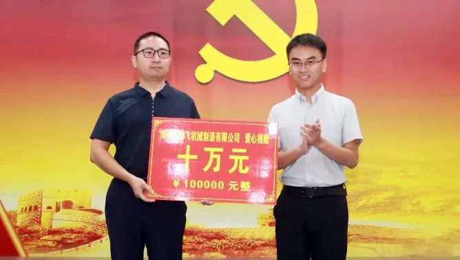 2023年9月8日,河南騰飛鑄鋼參加孟莊鎮政 府舉辦的“99公益日”捐贈儀式,并捐款10萬元整。